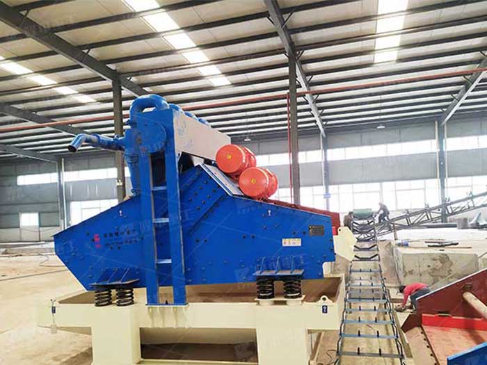 如果在旱地使用細(xì)砂回收機(jī)設(shè)備,水資源方面就是成了一件頭疼的事情,因此每個(gè)沙場(chǎng)都需要配備多個(gè)沉淀池進(jìn)行過濾沉淀。細(xì)沙回收機(jī)可以有 效的降低沙子的流失率,使其控制在5%至10%內(nèi),很好的解決了人工骨料加工系統(tǒng)中出現(xiàn)的成品沙細(xì)度模數(shù)高的問題,使沙子得到了充分的利用,從而減少了沉淀池的工作量,還降低了沉淀池的清理成本,并且廢水進(jìn)入沉淀池后含泥沙量大,造成沉淀池淤塞,需要經(jīng)常清理。細(xì)砂回收機(jī)可有 效回收細(xì)沙,不僅改 善機(jī)制砂質(zhì)量,還可以提高制砂生產(chǎn)線產(chǎn)量。既創(chuàng)造可觀經(jīng)濟(jì)效益,也減少后期處理成本。